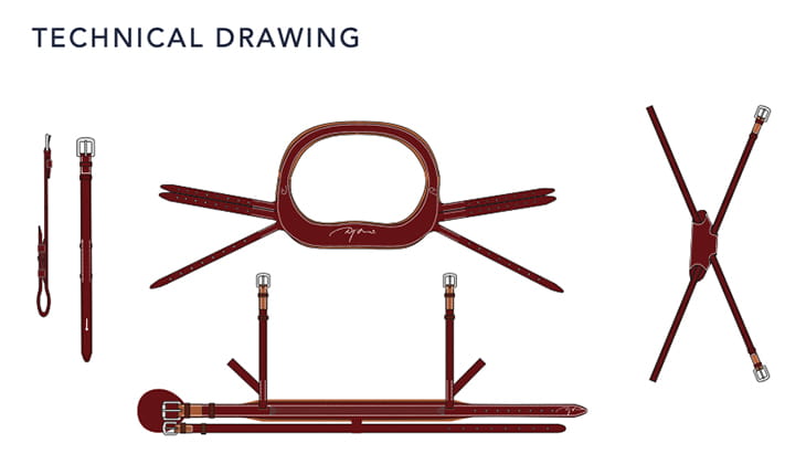 Nagłówek i naczółek zostały wykonane z jednego kawałka skóry, aby zmniejszyć nacisk na potylicę (1. i 2. kręg szyjny). Pasek podgardlany posiada dodatkowe zapięcie pod ganaszami połączone z nachrapnikiem, dzięki czemu stabilizuje ogłowie i sprawia, że nagłówek leży za drugim kręgiem szyjnym.